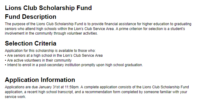 When applying for scholarships, the first thing you need to understand is the eligibility requirements of the scholarship. The eligibility requirements are determined by the funder (the person who is providing the money to the scholarship award) and outline the type of person they want the award to go to. They will select a student based on their personal attributes, experiences, goals, or other qualities of the student. Common eligibility requirements include high school grade point average, financial need, location of residence, participation in extra-curriculars, and area of study. Take a look at the sample eligibility requirements below and see if you are eligible for one or more of the mock scholarships below.