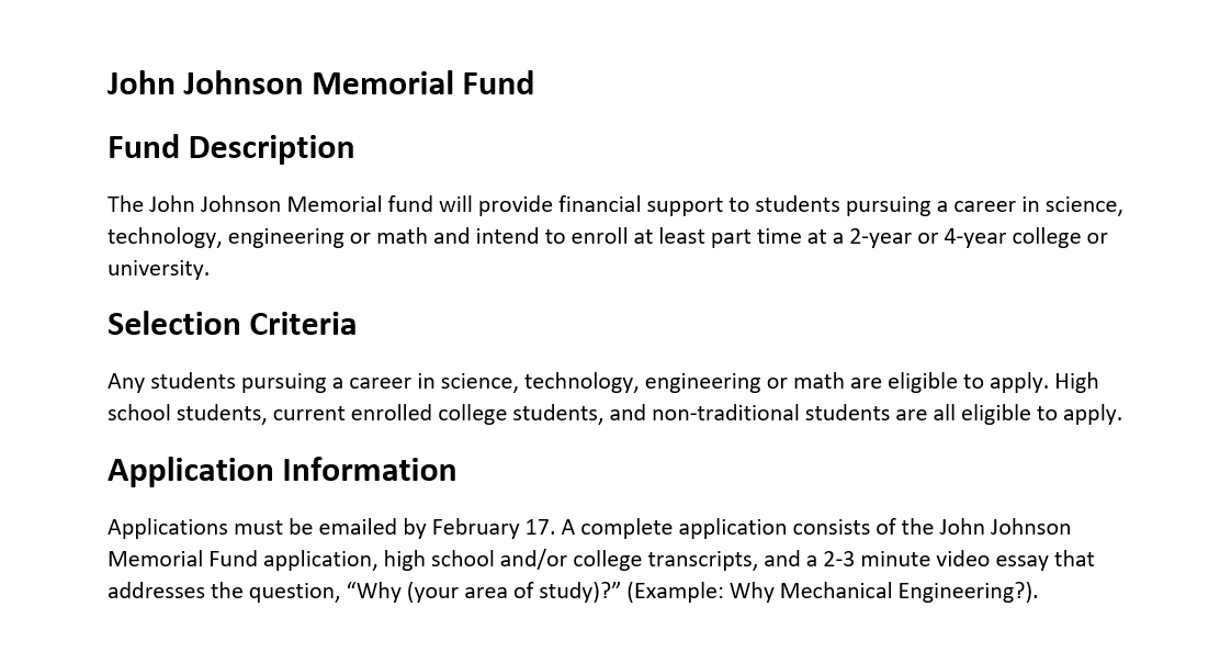 One of the biggest ways to determine if there is flexibility in the scholarship committees decision is the word “preferred” appearing in the application. This means that while they have a specific type of candidate in mind, they are still willing to accept other candidates. Often, you will see preferences surrounding race, gender, or religion. Let’s say that the John Johnson Memorial Fund earlier is funded by a Catholic church. That committee may have a statement such as, “Preference will be given to members of the Catholic church.” That means preference will go to Catholic applicants, but it does not mean that folks who identify with another religion would be ineligible to win. Ultimately, it is up to you if you want to apply for scholarships that you may be on the edge of meeting one or more requirements. If it is a short application that you’ve already got materials for it prepared, absolutely go for it! However, if it will take several hours of your time or you are confident it’s an award that will have many applicants, you may choose to focus that time elsewhere.